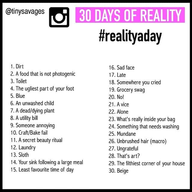 I’ll update my photos here, but if you prefer your reality in real time, you can follow along on Facebook and Instagram. I’m using the hashtag #realityaday. I figure the very worst that can happen this month is the world sees my failings, that photo where my eyes look like they’re pointing in different directions and a lady in Ethiopia whose reality makes mine pale in significance is made well.