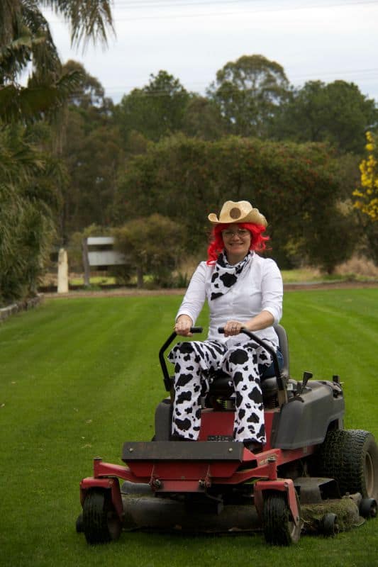 That was until, a red-haired cowgirl wearing cow print chaps appeared at our back door.