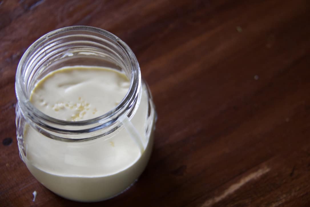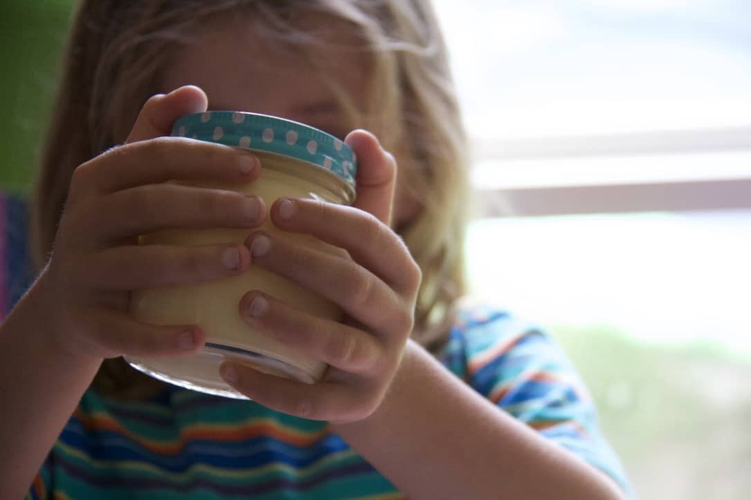 - Pour some cream into your jar, leaving enough room for shaking. We used 200ml jars on Monday and 80mls of cream was about right.