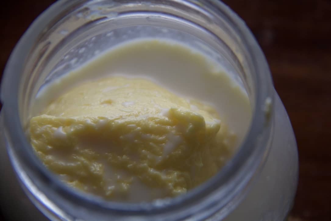 The final product in you jar should be a little ball of butter. Spread that golden goodness on anything you have to hand! Keep refrigerated and consume within a few days.