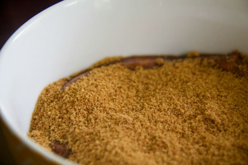 I can’t claim to have invented this yoghurt trick – Mum’s been doing it for years. Place the yoghurt in a bowl and sprinkle the coconut sugar on top. Cover and refrigerate for a couple of hours. Moisture from the yoghurt will turn the sugar to a caramel liquid on top of the yoghurt.