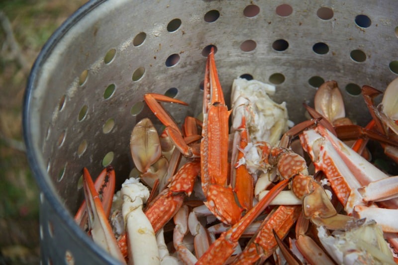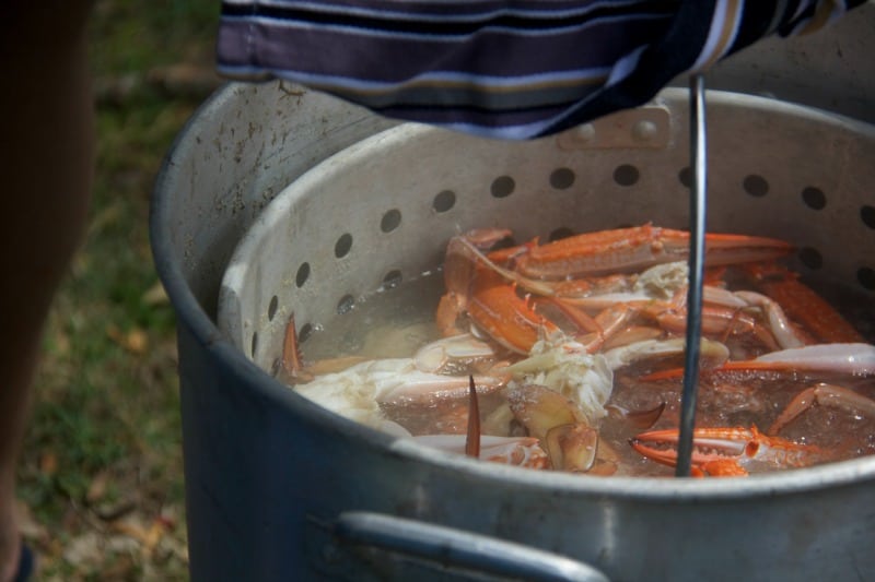 The boys cooked the crabs in a gas-fired boiler and the girls spent the afternoon chatting, sipping and picking the meat.