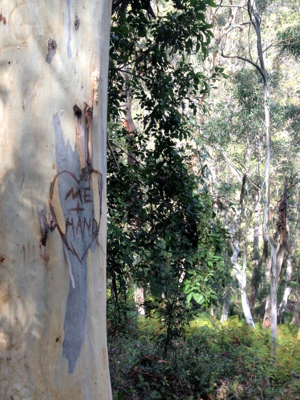 Further along our walk I spied another declaration of love. Somehow I suspect this bloke isn’t getting as lucky as the fellow in the carpark.