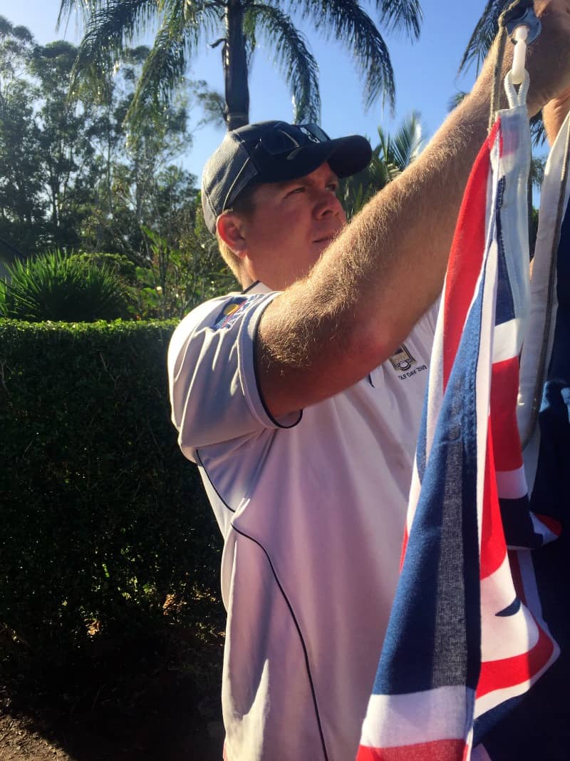On Saturday, Bearhands unveiled his latest erection and it was indeed a NINE METRE flagpole. Furthermore, it looks wonderful and my concerns were unfounded. I was wrong. Nothing fell on the house and I realised that what Bearhands lacks in his sales pitch he makes up for in execution.