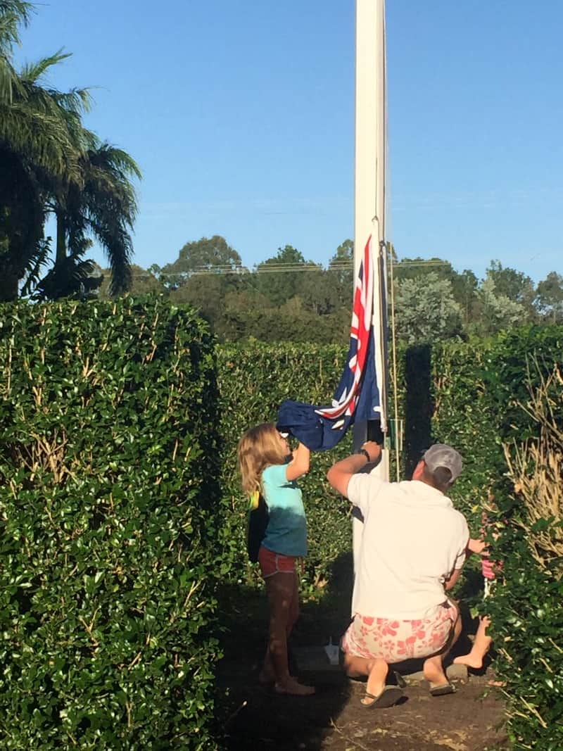While the girls and Bearhands set about hoisting the flag, I stood back sipping my coffee, snapping a few photos and humming the words to Harvey Danger’s Flagpole Sitta.