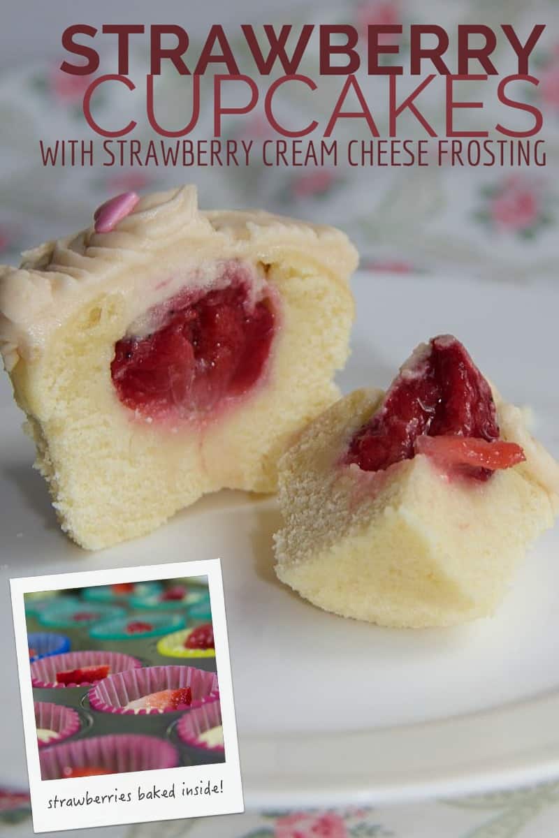 How sweet are these! I just love cupcakes and strawberries. Just love the sound of that strawberry cream cheese frosting!
