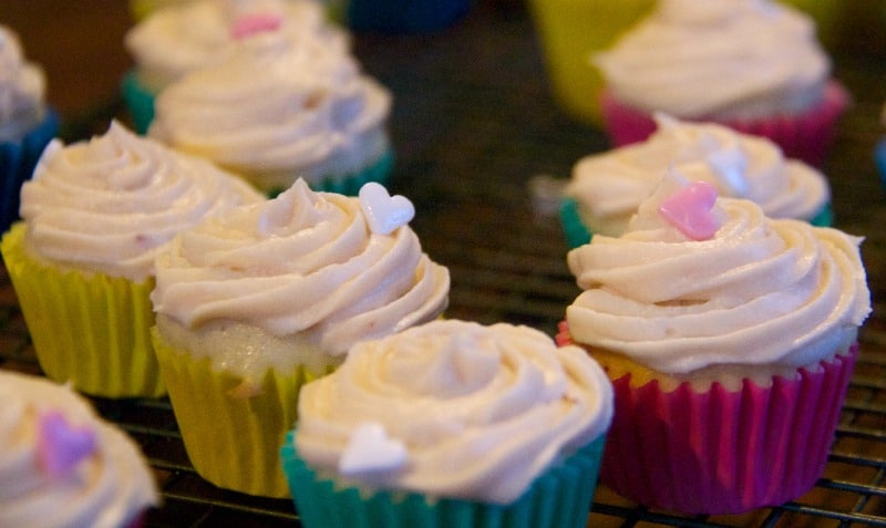 Pipe onto the top of cooled cupcakes and decorate with love hearts to add legitimacy to your Frozen fabrication!