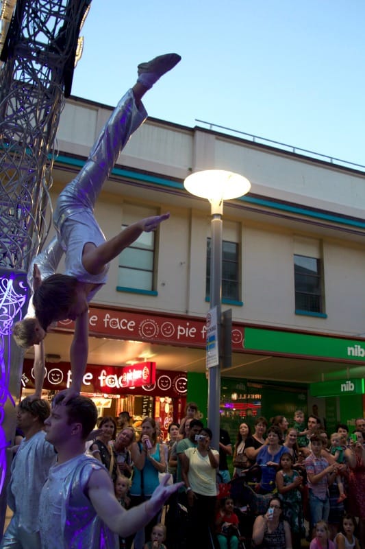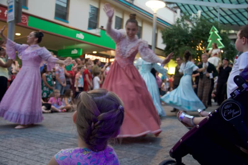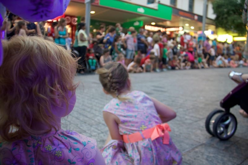 The kids ate the dinners and later a nice bloke let the girls sit on the ground in front of him, so they could see the Myer Christmas Parade. The parade far exceeded my expectations (which were low after seeing the Christmas windows).